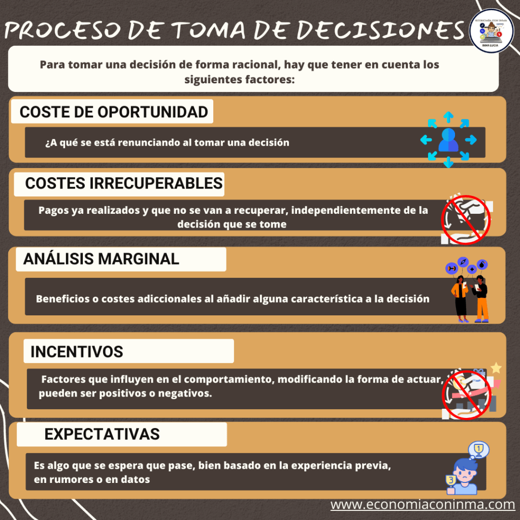 En este apartado nos vamos a centrar en el proceso de toma de decisiones y en los factores que hay que tener en cuenta para tomar una decisión. Al hablar de administrar y dar el mejor uso posible a los recursos se está hablando de tomar decisiones de forma racional, es decir haciendo uso de forma eficiente de toda la información disponible y pensando solo en nosotros mismos, pero no siempre las decisiones se toman de forma racional como demuestra el premio Nobel de Economía de 2017 Richard H. Thaler al estudiar la irracionalidad de las decisiones económicas a través de la economía conductual.