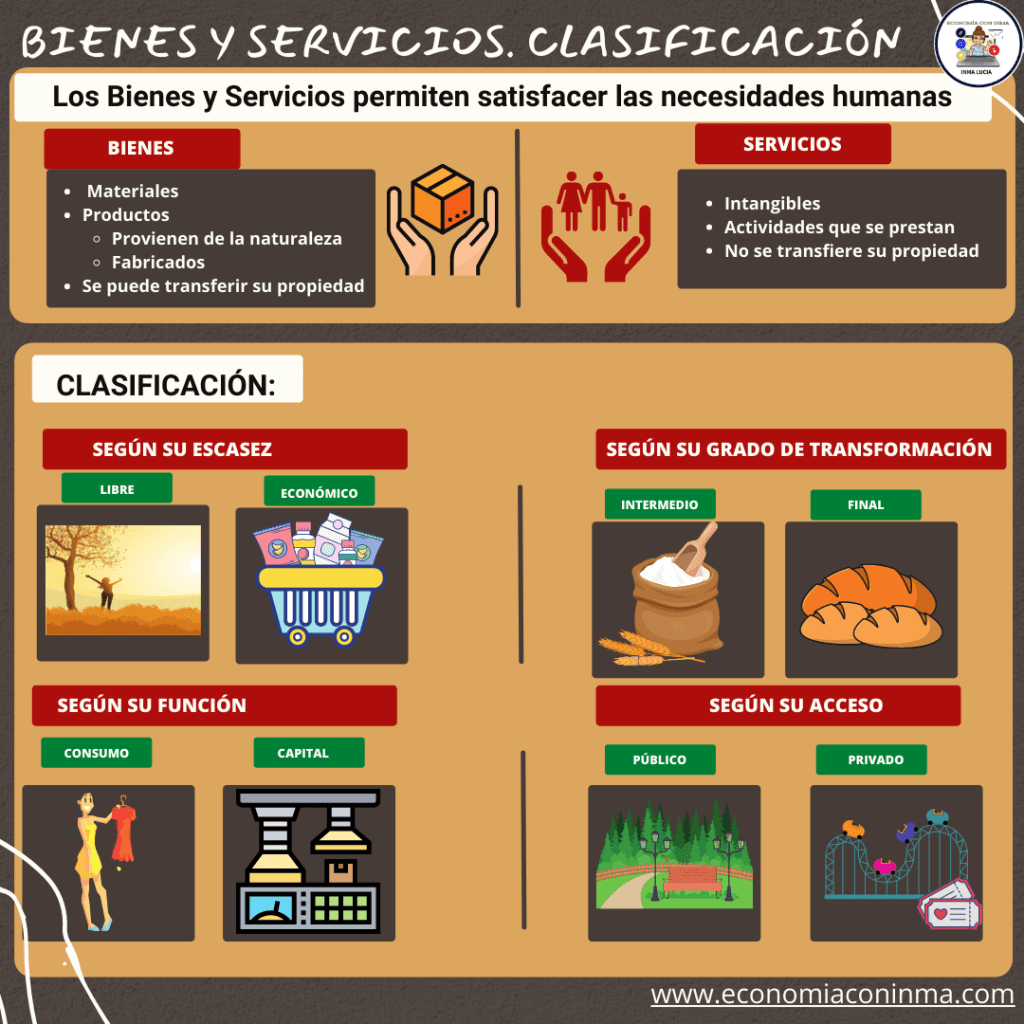 Los bienes y servicios son lo que nos permite satisfacer las necesidades, entendiendo por necesidad la sensación de carencia de algo unido al deseo de satisfacerla como vimos al hablar del concepto de escasez.
