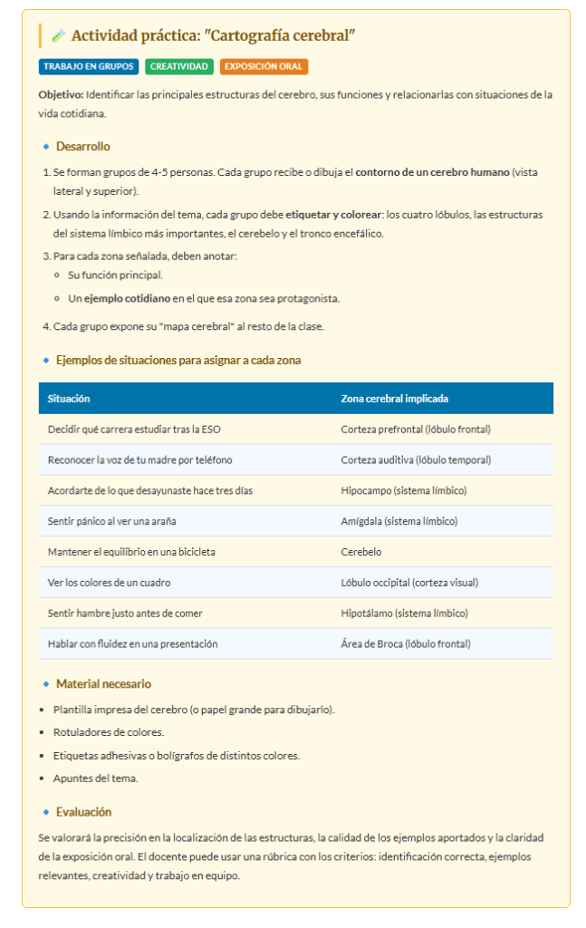 ⚠️ Cuidado con el mito: Durante años se dijo que las personas eran «más de hemisferio izquierdo» (lógicas) o «más de hemisferio derecho» (creativas). La neurociencia actual demuestra que ambos hemisferios siempre trabajan juntos: casi ninguna tarea usa solo uno de ellos.