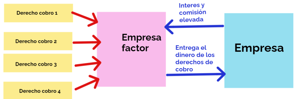 Estos derechos de cobro se los va a ceder a una empresa que se llama Factor a cambio de un interés y una comisión elevada, pero a cambio, el riesgo de impago va a pasar de la empresa que cede los derechos a la empresa factor.