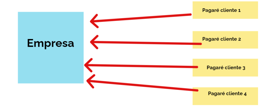 Veamos cómo funciona con un ejemplo gráfico. Una empresa tiene cuatro clientes que le deben dinero y que han firmado un efecto comercial o un pagaré.