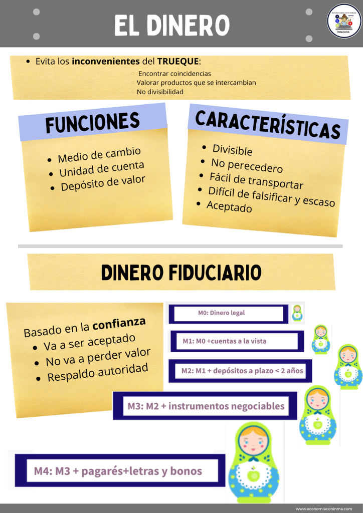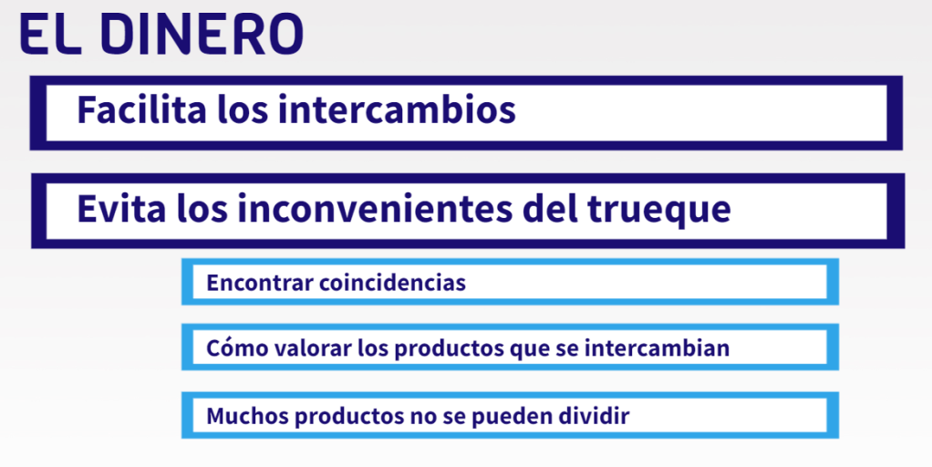 El dinero es una herramienta que facilita los intercambios y evita los inconvenientes del trueque, es decir es un medio de cambio.