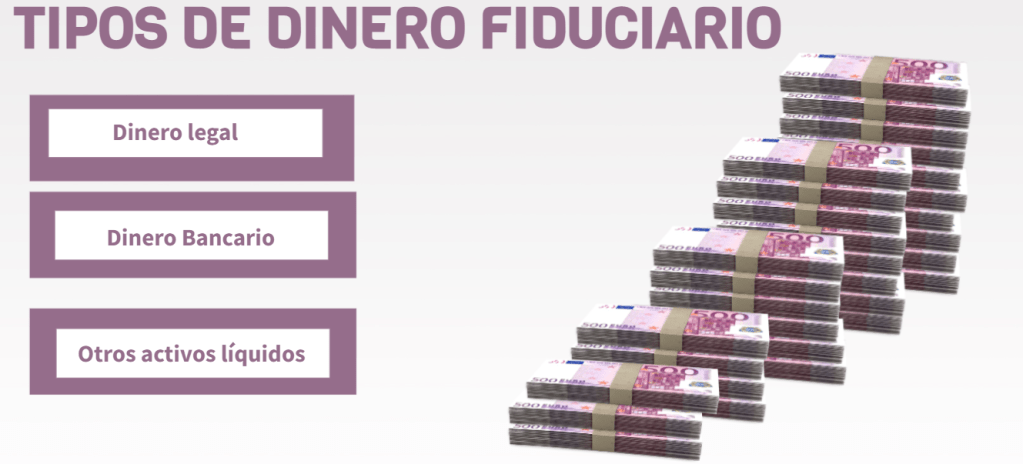 Dentro del dinero fiduciario podemos distinguir tres tipos de dinero: