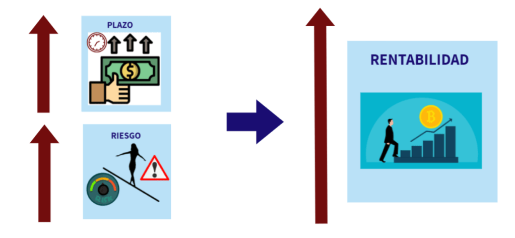 Esto es así ya que al ser mayor el plazo para poder recuperar la inversión, mayor es el tiempo de renuncia del inversor y cuánto mayor sea el riesgo, más probabilidad hay de no recuperar la inversión por lo que la rentabilidad que se habrá de exigir a la inversión deberá ser mayor.