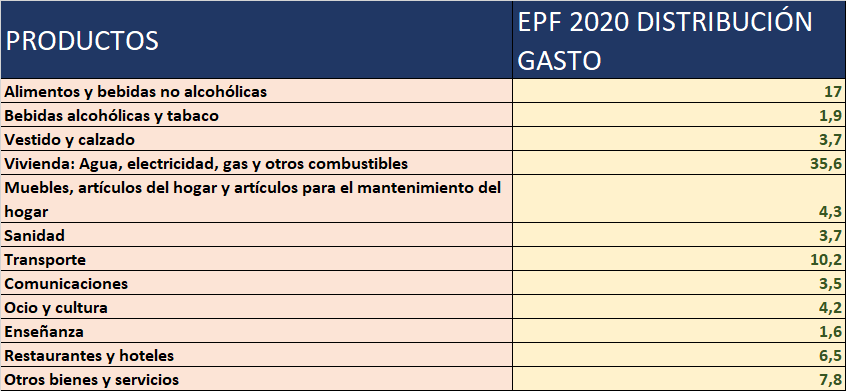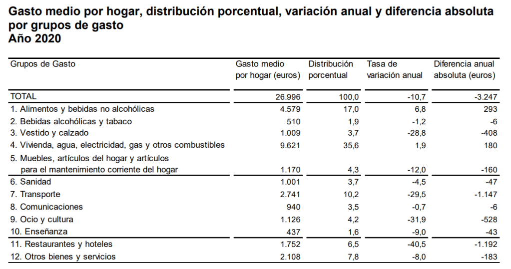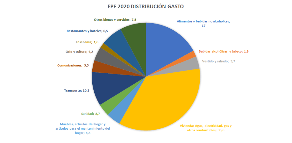 Como podemos ver en la Encuesta de Presupuestos Familiares del año 2020: