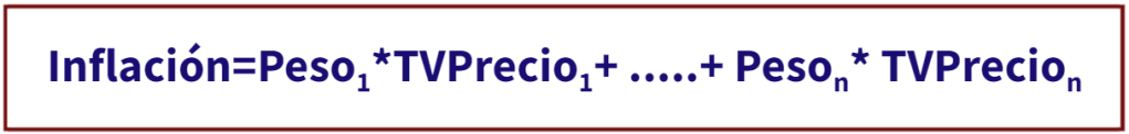 - Como la media ponderada con los pesos de la Encuesta de Presupuestos Familiares por la tasa de variación de los precios de cada uno de los grupos: