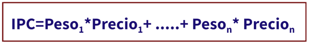 Por lo tanto, tenemos que el IPC es una media ponderada con los pesos que se han calculado en la Encuesta de Presupuestos Familiares del año que se considera como base, el IPC de ese año se considera uno.