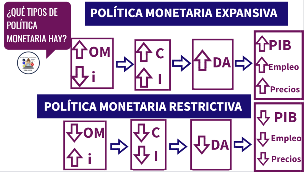 Una vez visto las variables y los instrumentos que van a formar parte de la política monetaria, vamos a ver los dos tipos de política monetaria que se pueden llevar a cabo: