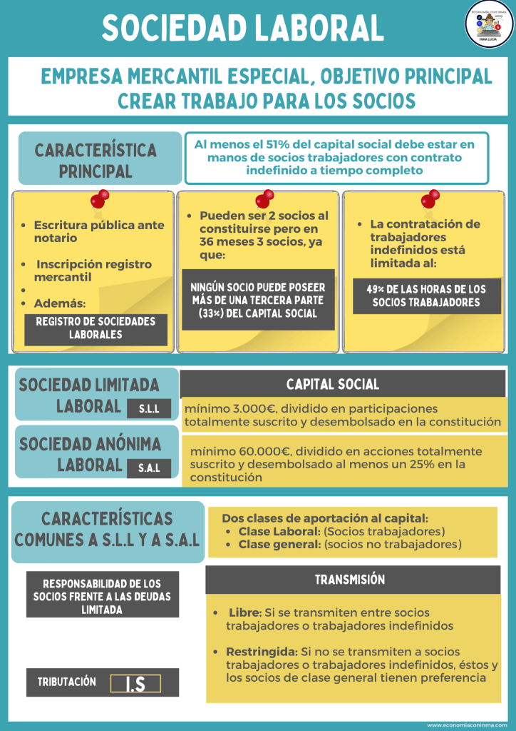 Las características más importantes de una sociedad laboral son: