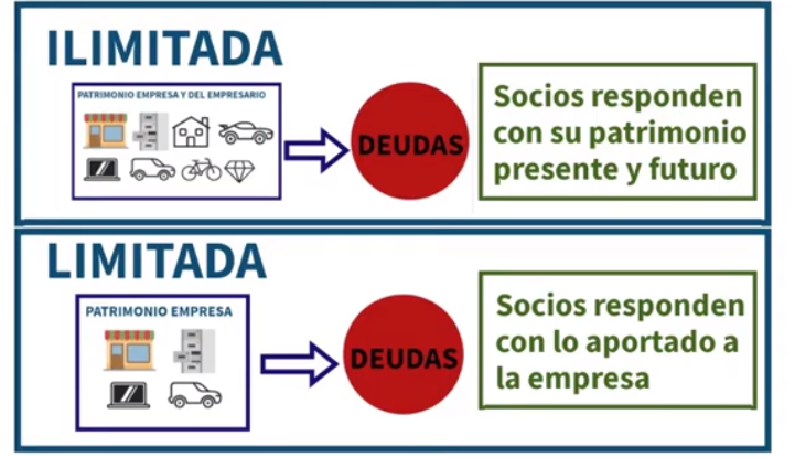 - Responsabilidad ilimitada, además de responder con el patrimonio empresarial, los socios van a responder con todo su patrimonio presente y futuro, hasta que se salde la deuda o prescriba.