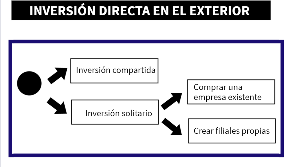 - Inversión directa en el exterior: Crear filiales o sucursales propias en el país donde se internacionaliza. Lo puede hacer mediante: