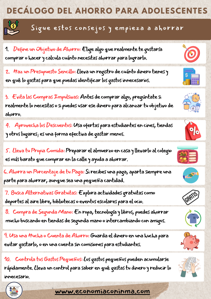En la siguiente infografía tienes un decálogo de consejos para ahorrar: