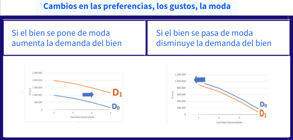 Por último vamos a analizar qué ocurre si hay cambios en las preferencias o/y gustos de los demandantes o si algo se pone de moda o por el contrario queda desfasado.