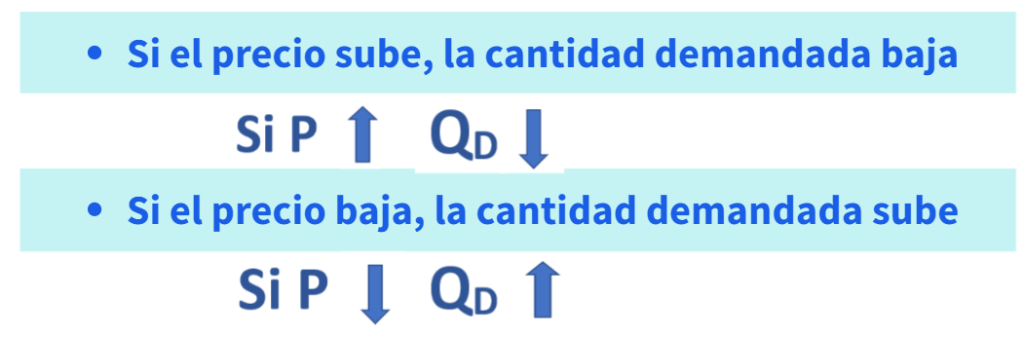 La característica más importante que tiene la curva de demanda-precio o la curva que relaciona la cantidad demandada con el precio es que es una función decreciente, es decir que si el precio de un bien o servicio sube la cantidad demandada de ese bien o servicio baja.