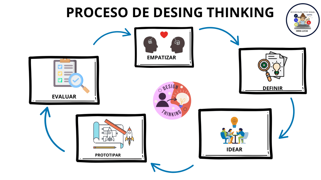 El Design Thinking ofrece un enfoque estructurado pero flexible, utilizando la empatía, la colaboración y la experimentación para abordar desafíos complejos. Su objetivo principal es desarrollar la innovación centrada en las personas, es decir partiendo de las necesidades de las personas a través de un proceso de investigación, buscar soluciones que cubran esas necesidades a través de la validación continua por parte de los usuarios. Es decir se basa en el método prueba (testar prototipo con los usuarios), evalúa o valida y mejora.