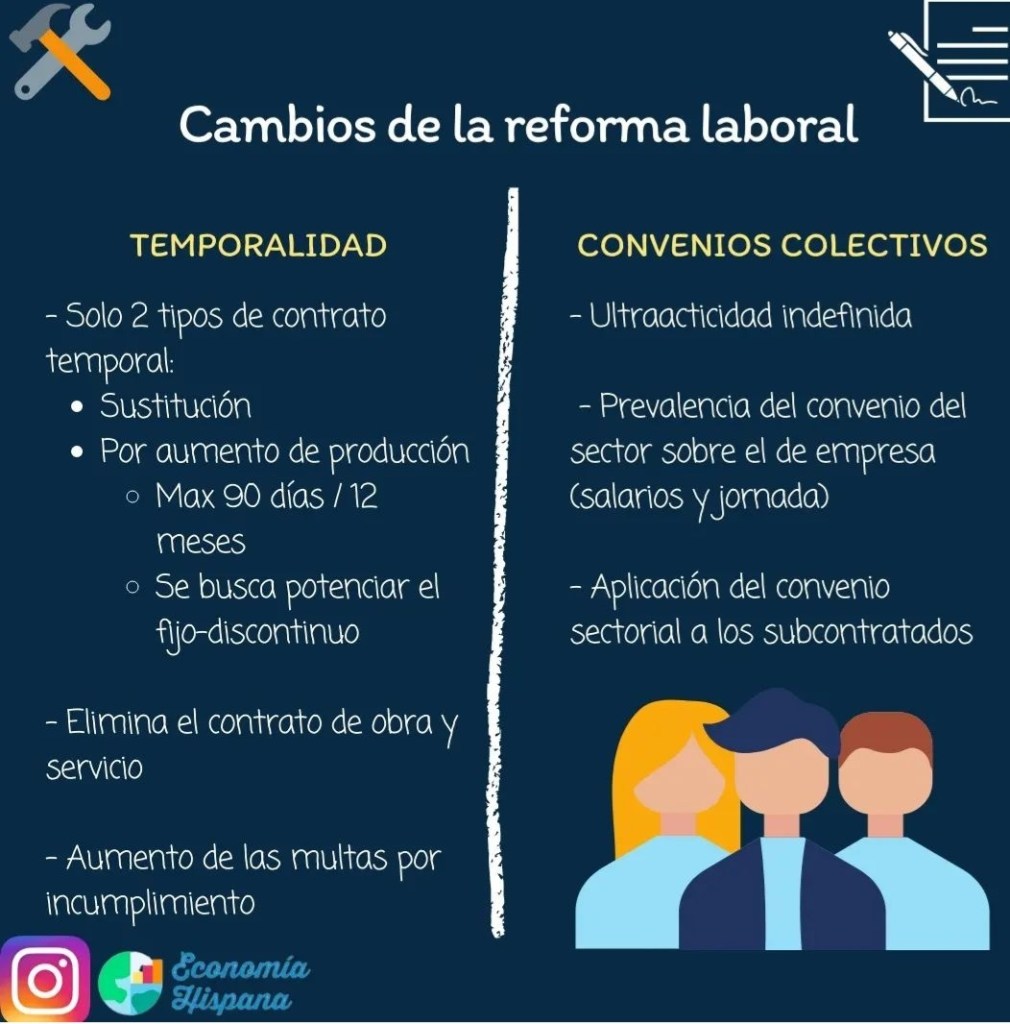 Los principales cambios de está reforma laboral se pueden ver en la siguiente infografía realizada por Juan José Peña, de @Economiahispana: