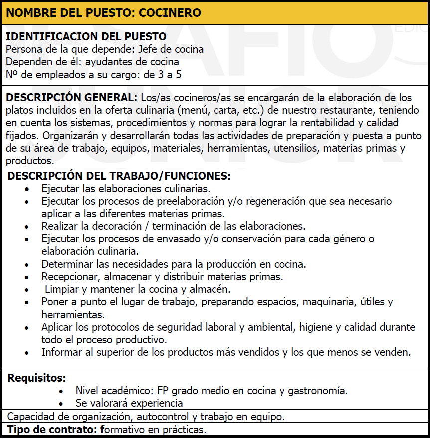 En la siguiente imagen se puede ver un perfil para un puesto de cocinero, realizado por alumnado de 2º de bachillerato: