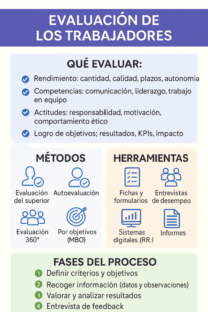 La evaluación de los trabajadores es un proceso sistemático mediante el cual la empresa analiza el rendimiento, las competencias, el comportamiento y el potencial de sus empleados. Forma parte esencial de la gestión de recursos humanos, ya que permite tomar decisiones informadas sobre formación, promoción, incentivos, retribución, mejora del clima laboral y planificación del futuro de la organización.