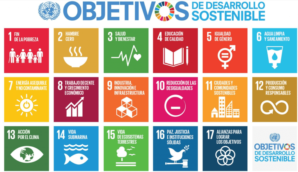 Los objetivos de desarrollo sostenible (ODS) forman parte de la agenda 2030 de la asamblea general de la ONU y consiste en un plan de acción que trabaja 17 objetivos con 169 metas de carácter integrado e indivisible que abarcan las esferas económica, social y ambiental buscando favorecer a las personas, al planeta y a la prosperidad y con la intención de fortalecer la paz universal y el acceso a la justicia.