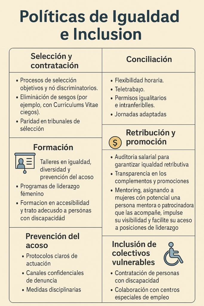 Las políticas de igualdad e inclusión se concretan en actuaciones como: