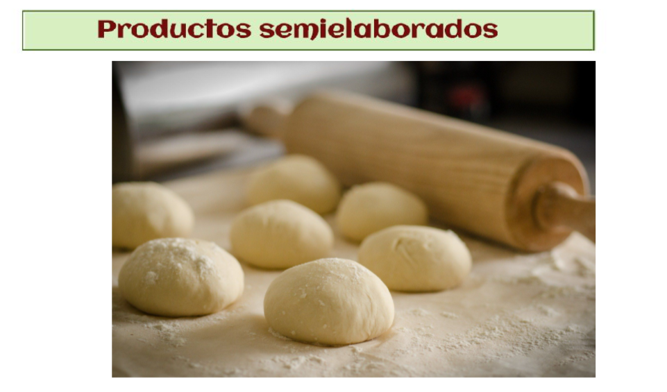 - Productos semielaborados: Productos que han tenido un proceso de elaboración en la empresa pero no están acabados , ni listos para la venta porque todavía requieren modificaciones. Por ejemplo en el caso del pan serían productos semielaborados la masa que está lista para hornear y que se puede congelar (almacenar) para cuando se necesite.