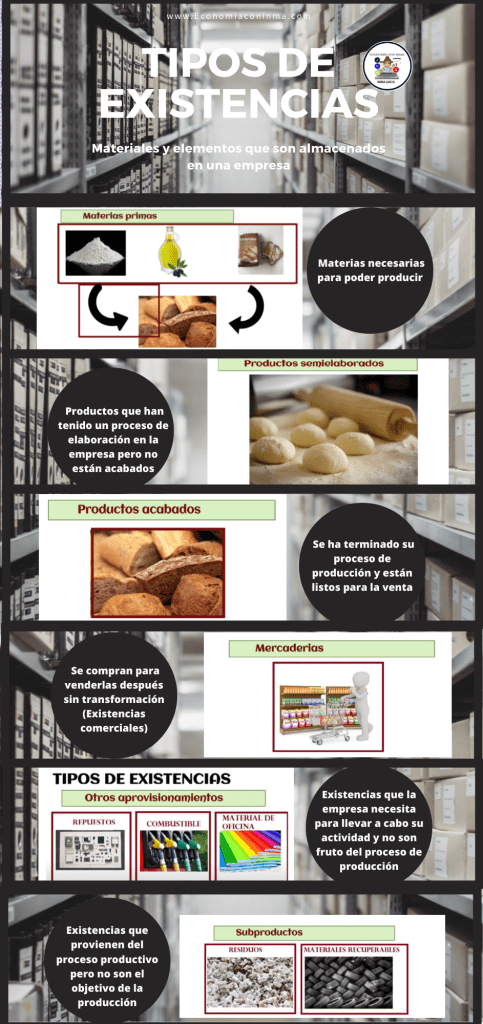 Existen distintos tipos de existencias pero los más importantes son: