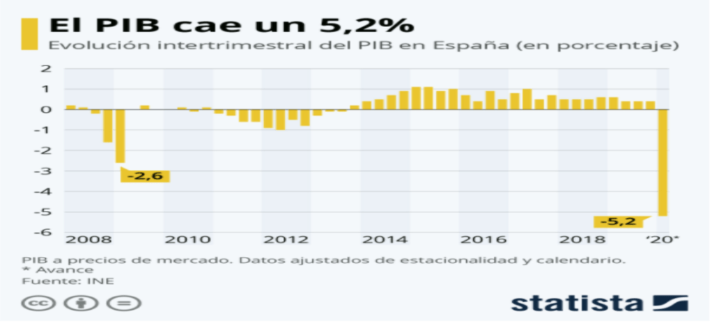 En la siguiente gráfica podemos ver que cuando los valores de la tasa de variación del PIB están por debajo de cero, la economía cae y cuando está por encima de cero, la economía crece.