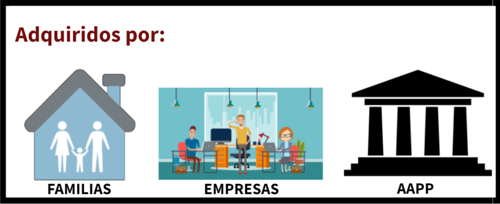 - Estos bienes y servicios finales van a ser adquiridos por las familias, por empresas, o por las administraciones públicas, bien del mismo país o bien de otro país.