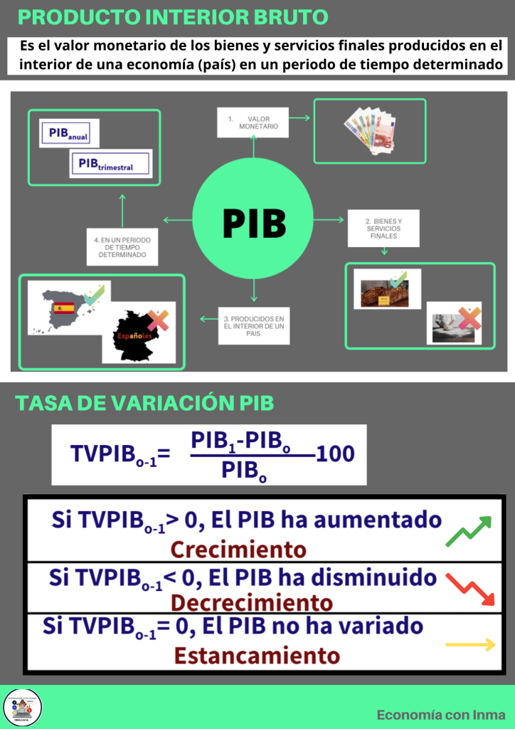 Comenzamos esta unidad explicando qué se entiende por Producto Interior Bruto, conocido por sus siglas PIB.