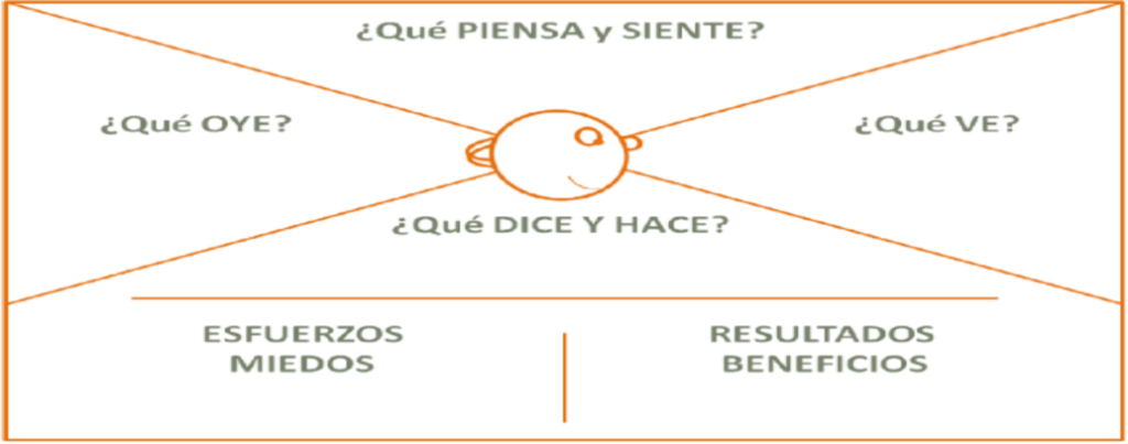 En la siguiente imagen se puede ver cómo es la plantilla del mapa de empatía: