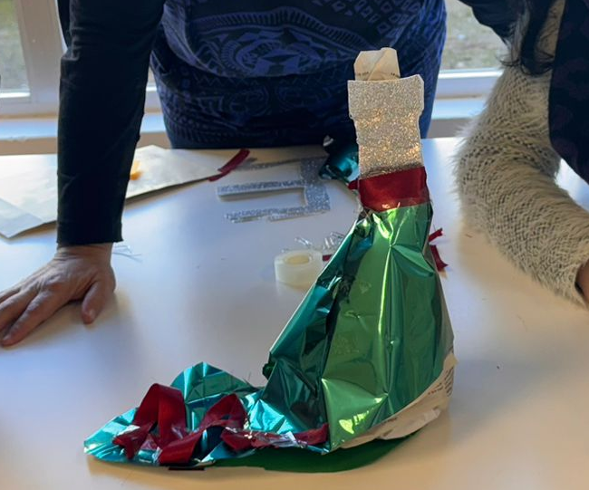 En la siguiente imagen puedes ver el diseño de un vestido para ocasiones especiales, basado en el concepto de la diseñadora Fely Campo pero con un toque Andaluz, que se hizo en un taller de prototipado en situaciones VUCA de Blanca Cañamero, se utilizó Cartulina y distintos tipos de papeles: