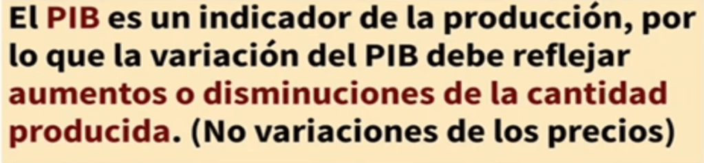 El PIB es un indicador de la producción, si medimos la evolución del PIB por medio de su variación, se debería de reflejar los aumentos o disminuciones de la cantidad producida, no las variaciones de los precios.