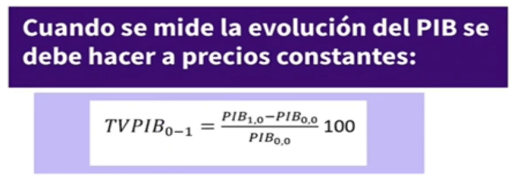 Para resolver el problema y que la evolución del PIB refleje solamente el aumento o la disminución de la producción, habría que aislar el efecto de los precios, y esto se va a hacer considerando los precios constantes a un periodo de referencia.