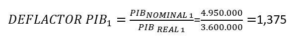 - PIB1,0 , el PIB del periodo 1 con precios del periodo 0.