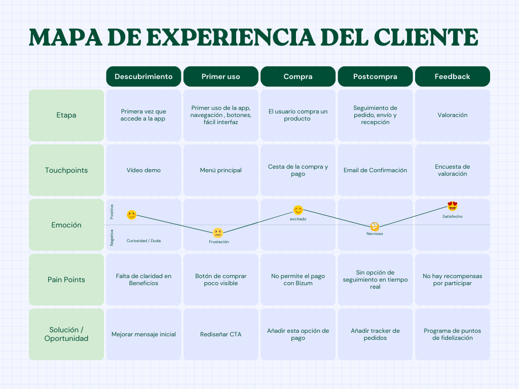 - Pain Points: Problemas o necesidades no cubiertas con las que se ha encontrado