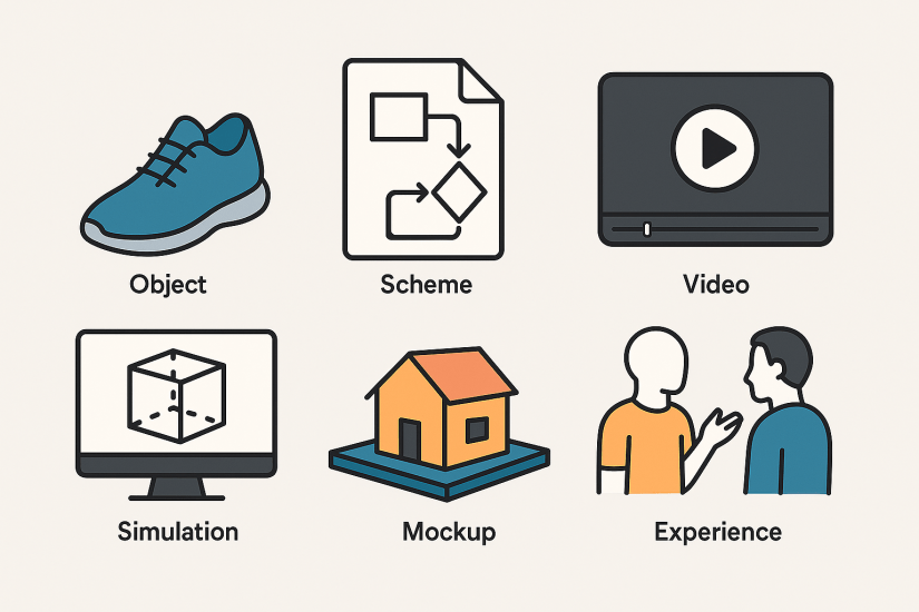 Un prototipo puede adoptar múltiples formas: un objeto físico, un esquema, un vídeo, una simulación, una maqueta o incluso una experiencia representada. Lo importante no es el nivel de acabado, sino su capacidad para aprender y validar.