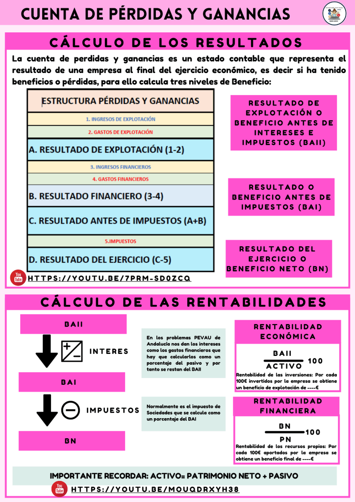 En la siguiente imagen puedes ver una infografía donde se explica el cálculo de rentabilidades a partir de la cuenta de pérdidas y ganancias y el balance.