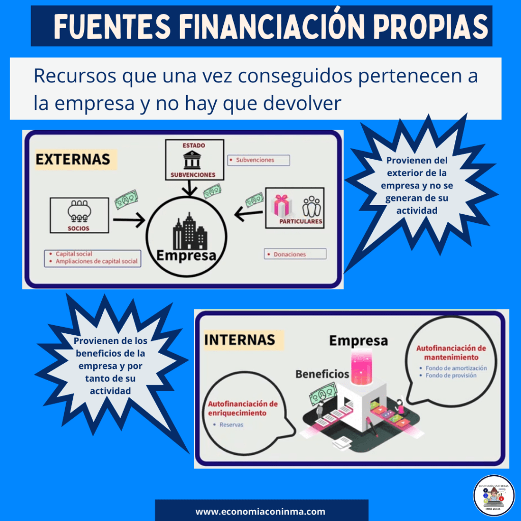 Las fuentes de financiación propias pueden provenir de los beneficios que genera la empresa, o pueden provenir de fuentes externas como de los socios, del Estado o de particulares.