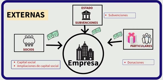 - Fuentes de financiación externas, las cuales provienen de fuera de la empresa y no se generan por la actividad de la empresa.