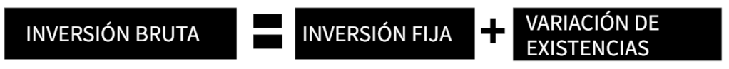 Por lo tanto, tenemos que la inversión bruta o inversión total, se puede dividir en inversión fija más la variación de existencias.