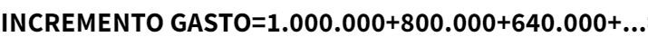 Por lo tanto, el millón de euros de gasto inicial se ha convertido en un millón de euros más 400000€, más 400000€, más 320000€, más 160000€, más 160000€, más sucesivas compras que van a realizar los distintos agentes económicos según se vayan necesitando nuevas compras y nuevos trabajadores.