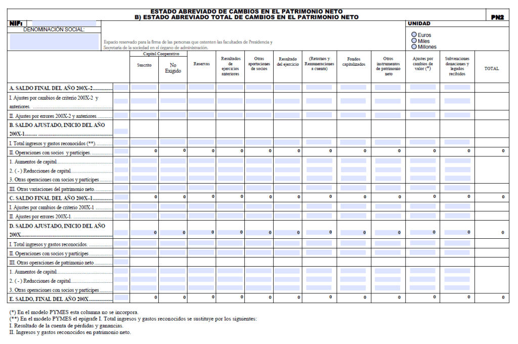 El estado de cambios en el patrimonio neto, como el propio nombre indica, va a mostrar los cambios que ha habido en las cuentas del patrimonio neto.