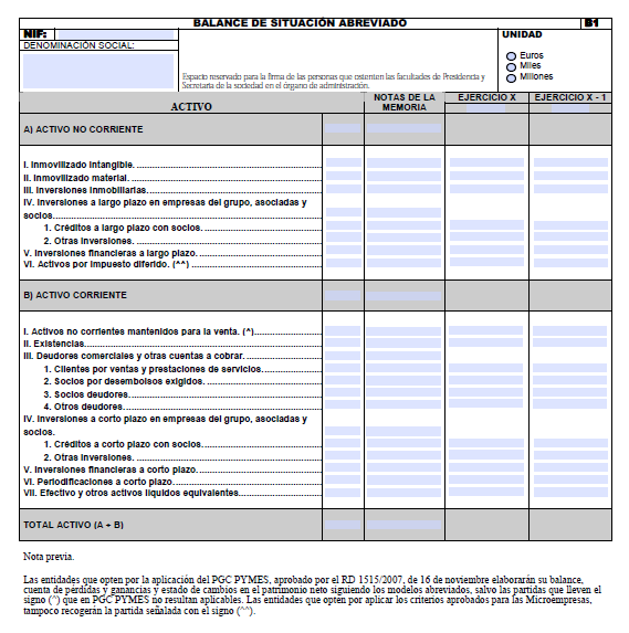 La memoria de PYMES y el PGC abreviado deben contener los siguientes elementos: