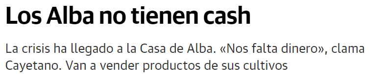 O ser un problema temporal, ya que la empresa puede tener solvencia a largo plazo, por ejemplo si posee una gran riqueza y tener un problema de liquidez en un momento determinado, este es el caso de la familia de Alba que poseyendo una gran riqueza o patrimonio ha llegado a decir que tenía problemas de liquidez para afrontar los pagos del día a día.