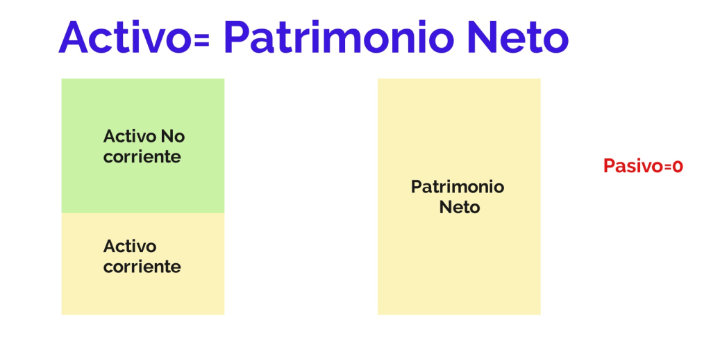 Si no hay deudas, la empresa se está financiando exclusivamente con patrimonio neto y por lo tanto el activo es igual al patrimonio neto.