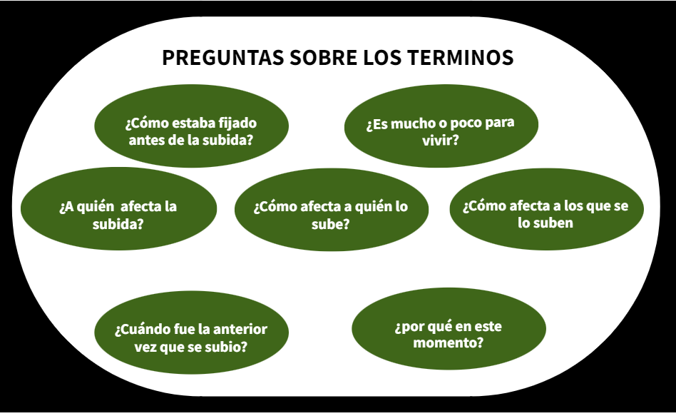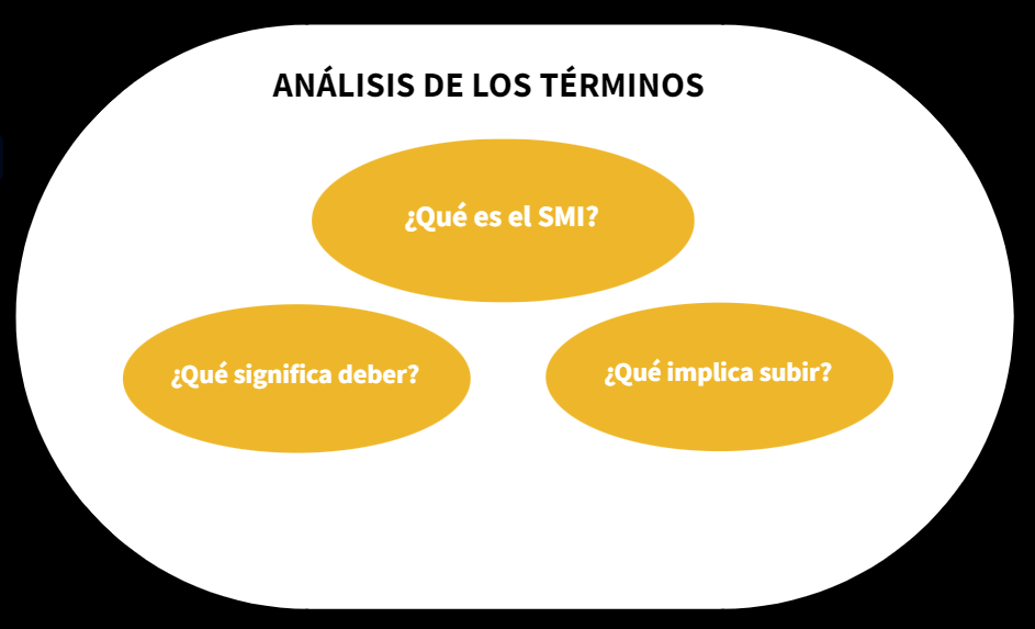 Por ejemplo, si la pregunta del debate es si se debería de subir el Salario Mínimo Interprofesional, los términos que deberíamos analizar son: SMI, deber y subir