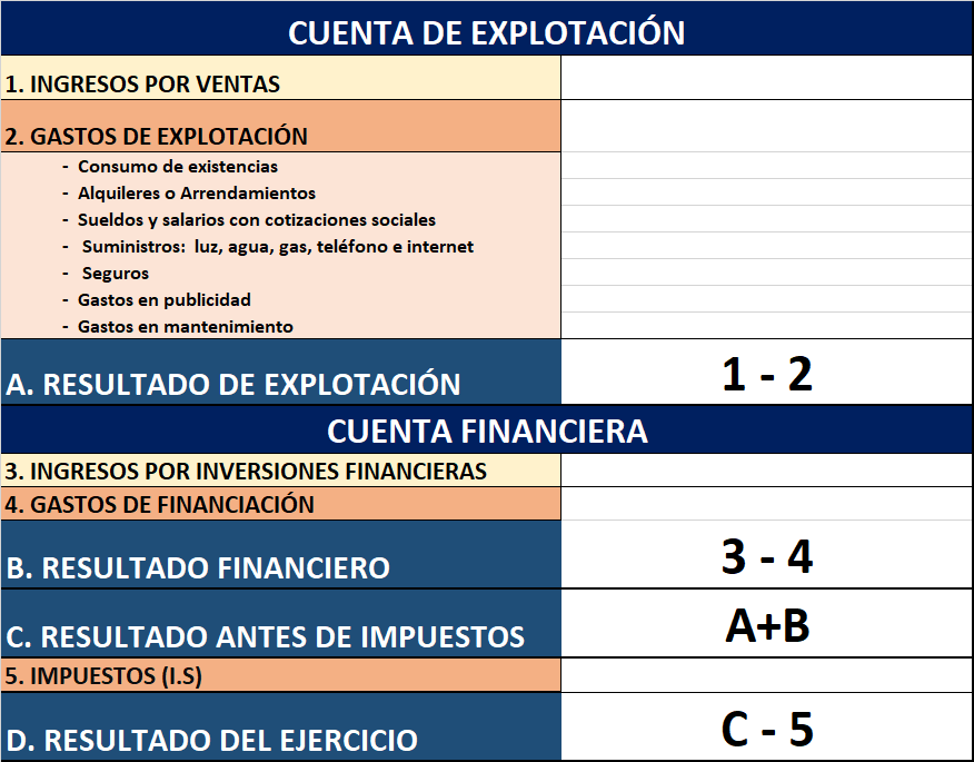 Una vez que se han estimado los ingresos y los gastos de la empresa, estamos en condiciones de poder elaborar la cuenta de pérdidas y ganancias o la cuenta de resultados de la empresa.