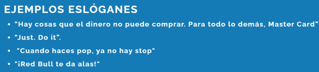 El eslogan de una empresa es una frase corta y pegadiza que represente a nuestra empresa y que evoque en la mente emociones relacionadas con nuestra empresa.
