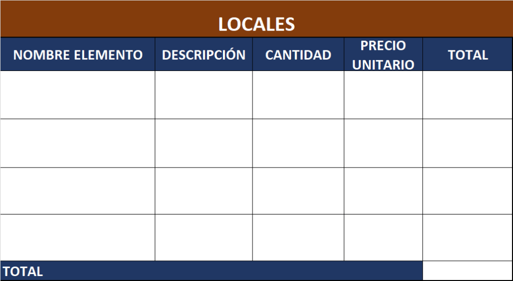 Se va a situar en una tabla todos aquellos locales que se van a comprar: