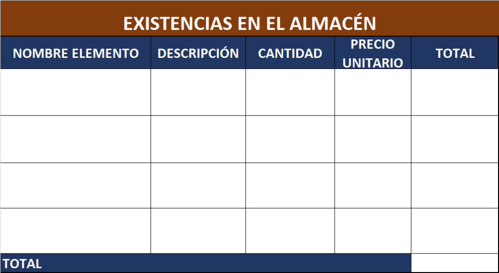 Vamos a poner las existencias necesarias para comenzar nuestra actividad y las situaremos en una tabla como la que sigue: